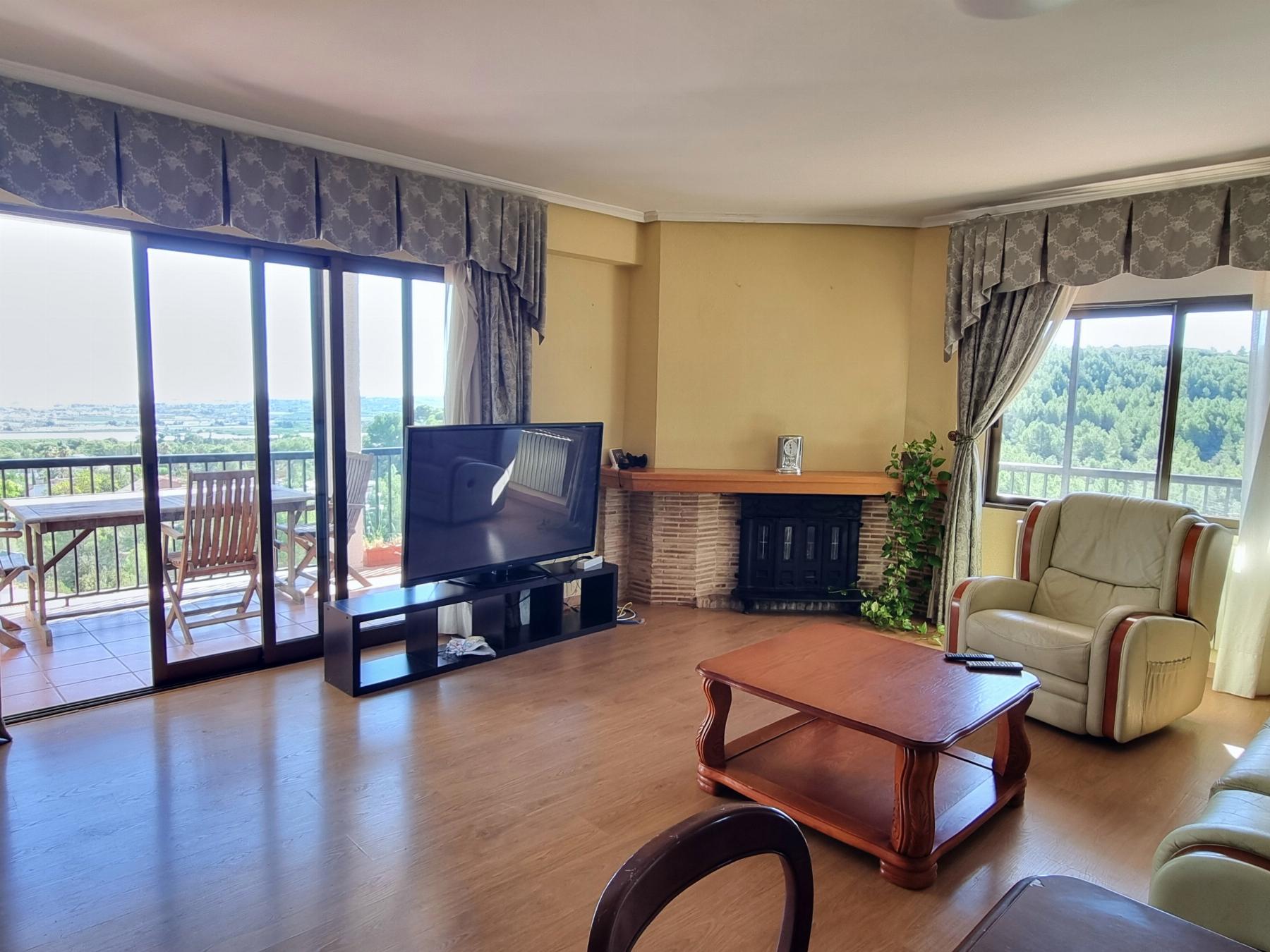 PLANTA PRINCIPAL: Salón comedor con CHIMENEA y acceso a TERRAZA con espectaculares VISTAS, cocina independiente, 4 habitaciones con armarios empotrados, un baño completo con bañera y un aseo.
